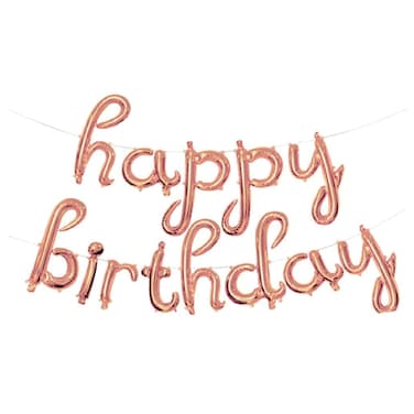 The Party Popper - Script Happy Birthday Foil Balloon Banner Rose Gold