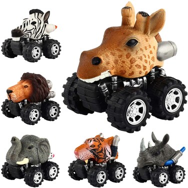 Pull Back Animal Car Monster Vehicle Playset - Set of 6