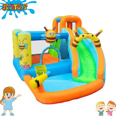 XINAGYU Kids Inflatable Bounce House with Blower Splash Water Gun Pool Water Slide Jump Bounce Houses for Kids Toddlers Bouncy Jumping House Backyard Outdoor Bee Water Slides Inflatable Bouncer Castle
