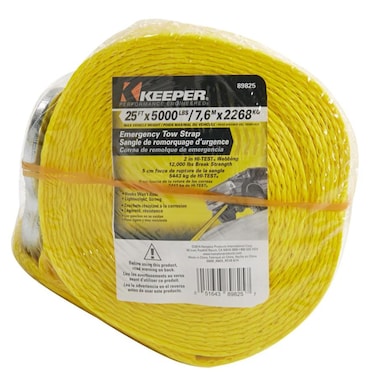 • <p>The Tow Straps are performance engineered to provide the perfect solution for your towing needs, The Hi-Test webbing of these tow straps will never rot or mildew, and the strap provides a lightweight solution for easy, compact storage impossible to achieve with a chain, Zinc-plated, forged hooks do not rust and are secure and reliable in every situation, Spring latches attach easily to vehicle frames, even in emergency situations when strength and speed are essential, Abrasion resistance and higher tension capacities allow tow straps to resist breakage and remain dependable even under the most demanding conditions, This 5 cm × 63.5 cm Tow Strap has a webbing capacity of 5443 kg, with a max vehicle weight of 2268 kg, It is best used for full-sized cars or light trucks<p>Box Contains: 1 x Tow Strap at 7.6 m x 2268 kg