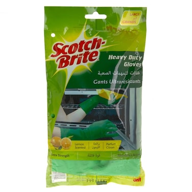 Get cleaning done with protection to your hands with 3M Scotch-Brite Heavy Duty Gloves It is ideal for household tasks It is lemon scented The pair is thicker for extra resistance and protection It protects your hands from contact with cleaners, detergents or any surface