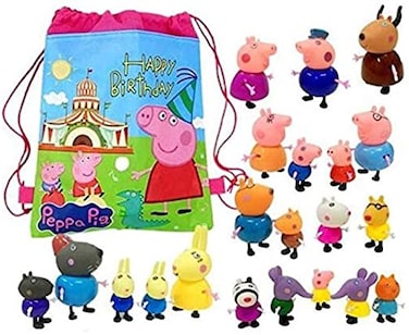 Am Anna - Am Anna 25Pcs Cartoon Peppa Pig Friends Toys Soft Head For Kids Gift With Bag
