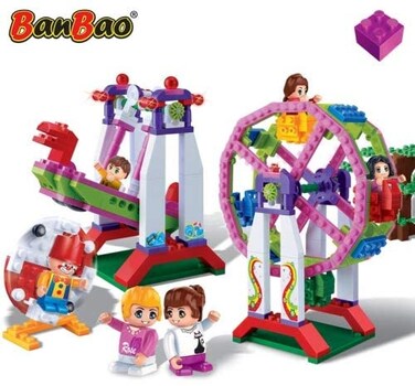 - <p>Get ready for a great day in the amusement park. Today the park opens its doors, and you and your friends are present! Experience an unforgettable ride on the Ferris wheel and look at the fun park from great height. Look, a swing boat, let's take a ride! Hold yourself tight, the swing boat goes up and down very fast. Afterwards, you and your friends can play one of the fun games, where you can win the best prices. Now you can experience yourself endless more fun in the amusement park! Build this adventurous amusement park, of the Trendy City series, with the building blocks of BanBao. The Trendy City series is a colorful educational construction series for girls. Build the attractions and spend an unforgettable day in the amusement park! This toy set consists of one amusement park with three attractions, six Tobees, accessories, and a lot more.<p>Contains, a Ferris wheel, Swinging pirate ship, and 6 Tobees<p>Number of Pieces: 401, Material: ABS plastic<p>BanBao is a universal and compatible building brick<p>Build More! Build Cool! Build Your Dream!,<p>28 x 28 x 5 cm; 500 Grams