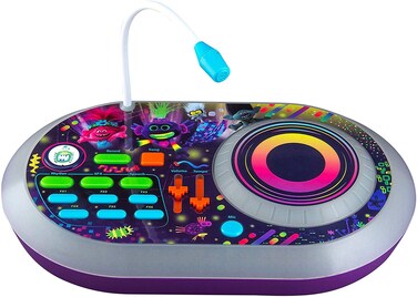 Get the party started with your own Trollex DJ Mixer. Pick a beat, and add some sound effects or speech from your favorite Trolls. Then use the turntable to scratch it up! Record and playback your creations for hours of DJ mixing fun! Activate background rhythms, mix in sound effects, character speech or add your own voice by using the built-in microphone