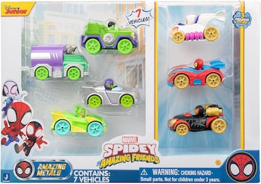 Introducing the Spidey and Amazing Friends Amazing Metal Multi 8pack cars, the perfect addition to any young superhero fans collection. These high-quality diecast cars are designed to resemble some of the most iconic vehicles from the popular animated series, Spidey and His Amazing Friends. Each set comes with five unique cars, each featuring intricate details and vibrant colors that perfectly capture the spirit of the show. From Spider-Mans sleek and stylish diecast cars are sure to impress even the most discerning collectors.