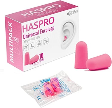 HASPRO Ultra Soft Foam Earplugs, Best Earplugs for Noise Canceling, Snoring, Work, DIY, Noise Reduction SNR 38dB (Pack of 10, Pink)