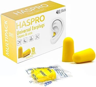 HASPRO Ultra Soft Foam Earplugs, Best Earplugs for Noise Canceling, Snoring, Work, DIY, Noise Reduction SNR 38dB (Pack of 10, Yellow)