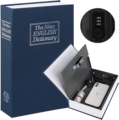 Rubik Book Safe With Combination Lock, Home Dictionary Diversion Hidden Secret Metal Safe Box For Money Jewelry Passport (24 X 15.5 X 5.5 Cm) Navy Blue, Medium