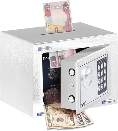 Rubik Mini Cash Deposit Drop Slot Safe Box With Key And Pin Code Option, White