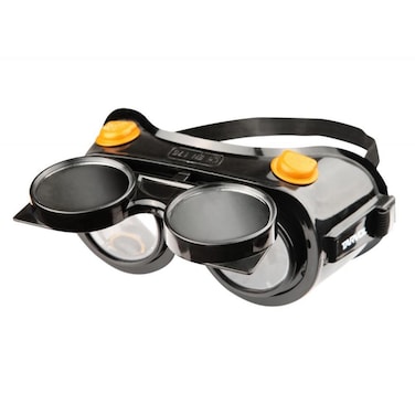 <li><b>Tolsen welding goggle of flip design with open-close locking position.<li>Soft and light weight PVC frame.<li>Colored inorganic outer glass lens.<li>Transparent clear inner glass lens.<li>Sturdy and elastic strap.<li>SPECIFICATIONS<li>Item Name Welding Goggle<li>Model 45075<li>Brand Tolsen<li>Material PVC<li>Colour Black and Yellow<li>Brand Origin (not manufacture) China<li>Packing Quantity 1<li>Unit Piece