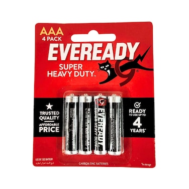 Don't get caught without power when you need it most - stock up on the Eveready AAA Super Heavy Duty Battery Black 4 PCS today and enjoy reliable performance for all your electronic devices.