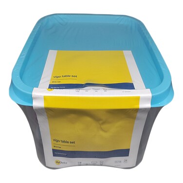 The My choice Vigo Table Set With Container Blue 24 PCS is a versatile and practical tableware set that includes 24 pieces.