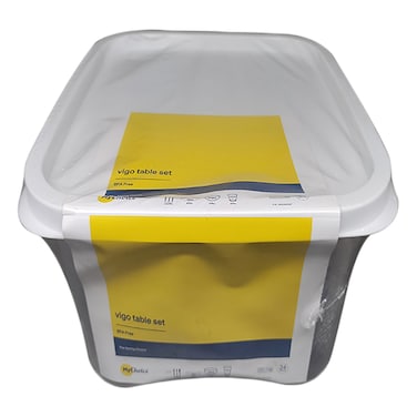 The My choice Vigo Table Set With Container White 24 PCS is a stylish and practical addition to any kitchen or dining room.