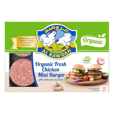Al Rawdah Organic Fresh Mini Chicken Burger 200g