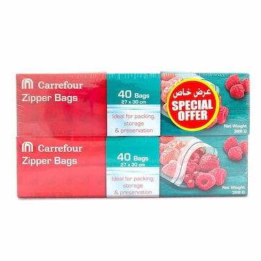 Carrefour Zipper 40 Bag Clear Pack of 2