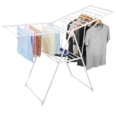 Clothes Drying Rack, Foldable Laundry Rack with Height-Adjustable Gullwings Space-Saving, Laundry Room Organization