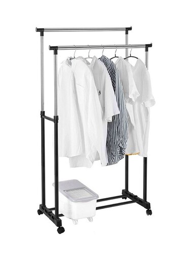 Generic Double Pole Clothes Portable Rack Silver/Black 78X42X160Cm