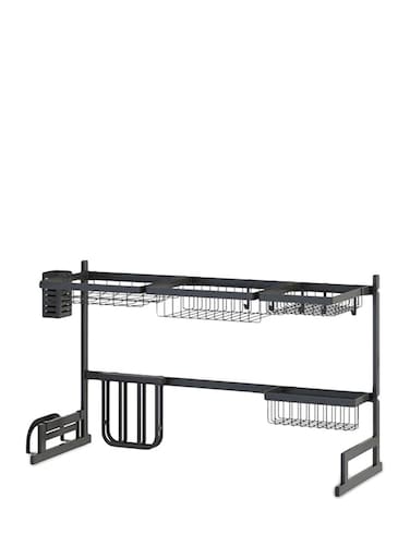 - <p>U-shape design ensures stability<p>Helps to organise all your kitchen supplies and save much more space<p>Suction cups will provide stability and safety when placing and removing dishes<p>Guardrail to prevent items from falling<p>High-quality material offers durability<p>Color Name: Black<p>Model Number: H27666L<p>Size: 2 x Shelves ( 30 × 27 cm ), Shelf ( 20 × 27 cm ), Shelf ( 25.5 × 11 cm ), Holder ( 20 × 20 cm ), Chopstick/Fork Holder and Cutting Board Holder