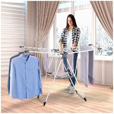 Rabos Clothes Drying Rack, Foldable Laundry Rack with Height-Adjustable Gullwings Space-Saving