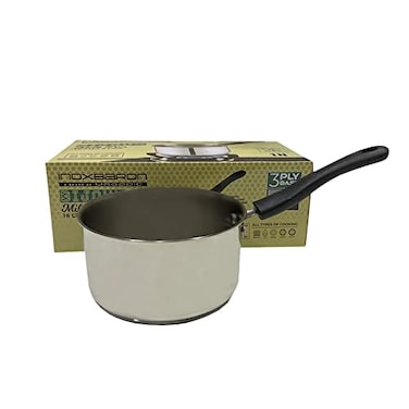 18/10 STAINLESS STEEL FRYPAN The Inoxbaron Virtue 3-ply Stainless Steel FRYPAN (16cm, 1.5 liters) is for better heat retention. It requires lesser oil and is good for cooking healthy food.