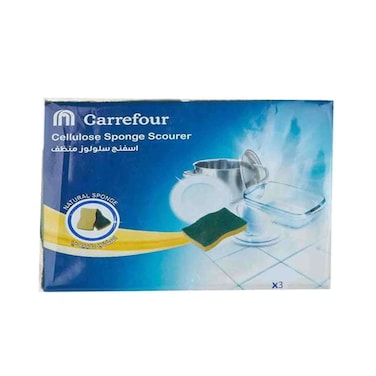 Carrefour Cellulose Nat Sponge With Scourer Multicolour 3 PCS