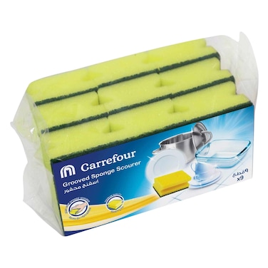 - Carrefour Grooved Scourer Sponge diligently clears any stubborn grime and food remnants from fine dinner sets and stainless steel cutlery