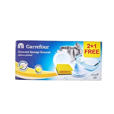 Carrefour Grooved Scourer Sponge Yellow 3 PCS