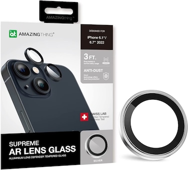 Amazing Thing Supreme AR LENS defender for Apple iPhone 14 and iPhone 14 PLUS is a Camera Lens Protector with Tempered Glass featuring AR Ultra Clear Technology coating to not only protect your valuable investment but also ensure uncompromising clarity and no interference to flash. The AR lens defender incorporates an Aluminum Alloy ring to ensure a stylish and classy look while Anti-Dust Omni Technology offers dust free protection. The AR Lens Defender is Waterproof, Scratch resistant and designed to be case compatible so you can use your favorite cases while keeping your camera lenses scratch free.