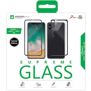 Amazing Thing - iPhone X Special Edition FRONT screen and BACK Tempered Glass Protector with Lens Protection - BLACK