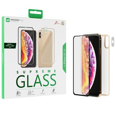 Amazing Thing iPhone XS / X Special Edition FRONT Screen and BACK Tempered Glass Protector with Lens Protection - BEIGE (for GOLD iPhone)
