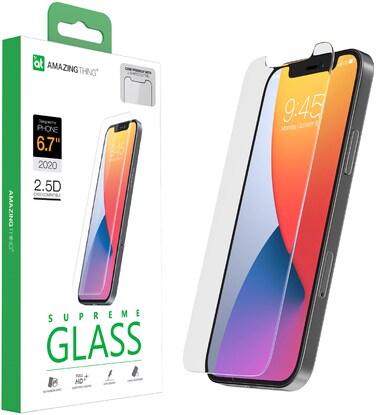 - <p>AMAZINGthing Supreme Glass Case Friendly 2.5D for Apple iPhone 12 Pro MAX is 9H hardness rated with only 0.33mm thickness Tempered Glass screen protector with Rounded edges for a Safe, comfortable fit. It features an Oleophobic coating to prevent contaminants making the glass easy to clean. Touch screen sensitivity and HD clarity is maintained like the original screen. The 2.5D Protector is manufactured a fraction smaller than the device edges for better Case compatibility enabling you to install your favorite cover.</p>