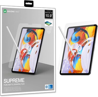 AMAZINGthing Paper Write Supreme Pure Matte Film 10th Generation (2022) iPad 10.9 inch is a Film based Screen Protector with Matte Finish which simulates Paper like Texture. The Paper Write Supreme film allows artists to Sketch /