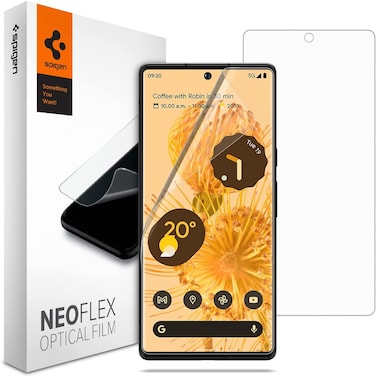 SPIGEN Neo Flex Optical Film for Google Pixel 6 PRO is a set of 2 Screen Protectors made with Flexible Thermoplastic Polyurethane Film (TPU). Say no to scratches, rainbow effects and bubbles! Neo Flex is self-healing and easily applied with Wet installation via included spray. Simply give the Neo Flex a few spritz of its magic and within 24 hours you will find your screen clear as new. Its wet application ensures a strong adhesion and a bubble-free surface. Neo Flex does not affect the touch sensitivity of the screen and is in-screen Finger Print Sensor Compatible.