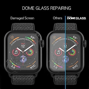 - <li>LIQUID DISPERSION TECHNOLOGY: Our patented liquid glass evenly disperses over your entire screen, including existing scratches and scuffs, and hardens to create an impenetrable edge to edge barrier while repairing former cracks and imperfections.<li>BEST COVERAGE: This Dome Glass Apple Watch Series 5 Screen Protector is a screen protector and case set which gives your Apple Watch 4 or 5 (40 mm) full coverage.<li>BUBBLE-FREE INSTALLATION KIT: To prevent errors and air bubbles, our install frame and UV curing light are included with purchase. Quality is reflected through commitment, so make sure you have enough time and patience to get an undeniably perfect result.<li>ULTRA HD CLARITY: Perfectly matches Apple Watch 5 and 4 with no reduction in clarity or touch sensitivity.