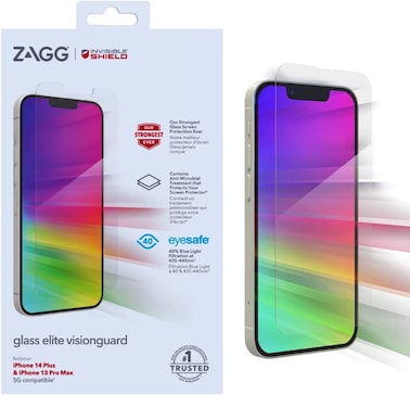 Zagg InvisibleShield Glass Elite Visionguard Anti Blue Light Tempered Glass Screen Protector for iPhone 13 Pro MAX (6.7 inch) is the next step in the evolution of unbeatable glass screen protection.