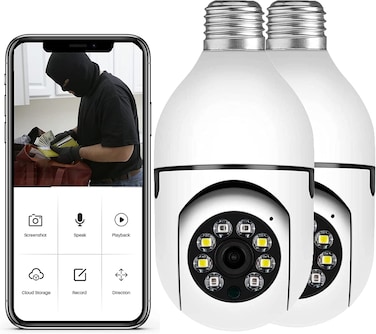 E World Unbox Happiness Autosur 2 Pcs Light Bulb Security Camera, 2.4Ghz & 5G Wifi Outdoor, 1080P E27 Light Socket Security Camera, Indoor 360 Home Security Cameras, Full Color Day And Night