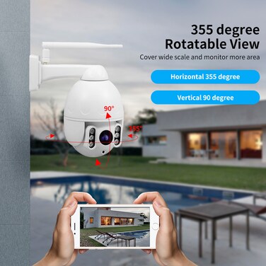 Generic-PTZ WiFi Camera Outdoor 1080P IP Security Camera Pan Tilt 4X Optical Zoom Dome Surveillance Monitor Two-Way Audio Motion Detection Night Vision Waterproof CCTV Camera