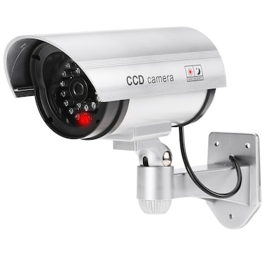 This simulation security camera is made of high quality and durable material.Fitted with a flashing red LED light and a waterproof cover, the dummy camera provides an effective deterrent. It also has an adjustable rotation bracket which can be rotated 0-90 degrees up/down and 360 degrees in horizontal direction. It is ideal for home, office, shopping mall, park, parking lot and other indoor or outdoor use.