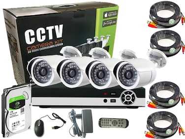 Tomvision - 4Channel AHD Camera KIT with 1TB Hard Disk 2.0MP/720P CCTV Security Recording System CCTV Kit 4Pcs Outdoor Bullet Camera and P2P Cloud Alarm System Home Security
