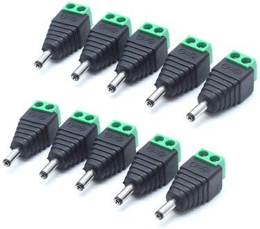 XBW (10 x Male) 12V DC Power Connector 5.5mm x 2.1mm 24V Power Jack Socket for Led Strip CCTV Security Camera Cable Wire Ends 10Pcs Plug Barrel Adapter