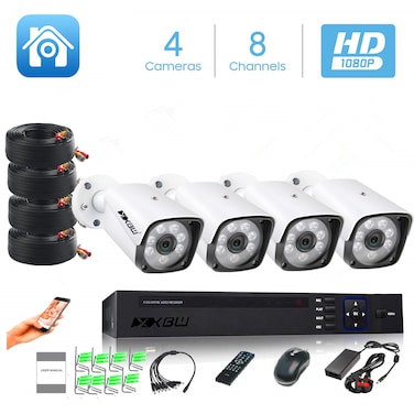 XBW - 4Channel CCTV security Kit 1080P/2.0MP 1920X1080 Camera 4CH Surveillance DVR kit with 8pcs 2.0mp 1080P Metal Outdoor Bullet Camera Alarm System&P2P Home Security(Not HDD)