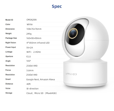 360° Free Rotation Crystal Clear Images Works 24hours Advanced Night Vision Human Detection Motion Tracking Real-Time Two-Way Call Sounds Notifications Cloud Storage or Micro SD Card Works with Amazon Alexa