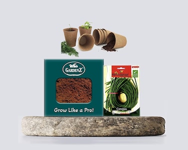 Gardenz Bundle-Pack Gardenz Soil Cocopeat For Indoor/Outdoor Plants 1.5 Kgs., Cowpea Seeds Ag00322 Agrimax, Jiffy-Pots Seed Starting 8Pcs