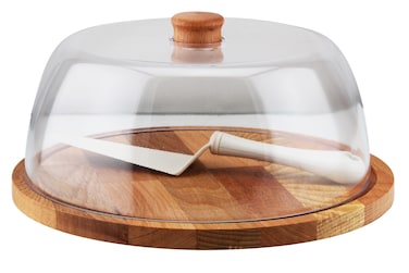 The cake stand is 29cm in size and comes in a multicolour design. The lid helps to keep the cake fresh and protected.