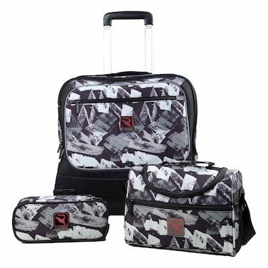 The Reflection Trolley Set includes 3 pieces of luggage, each featuring a camouflage design.