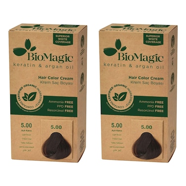 Bio Magic Ammonia-Free Keratin And Argan Oil Hair Colour Cream Kit 5.00 Light Brown 2 PCS