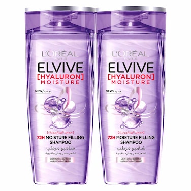 L'Oreal Paris Elvive 72H Hyaluron Moisture Filling Shampoo White 400ml Pack of 2
