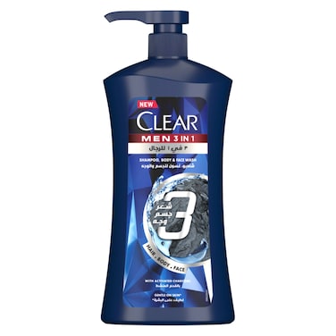 Clear Men Complete Care 3 in 1 Shampoo For Hair Face & Body With Activated Charcoal 900ml