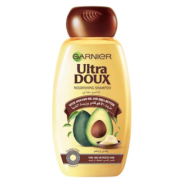 - Garnier Ultra Doux Avocado Oil And Shea Butter Shampoo is a real recipe to nourish and repair very dry or frizzy hair combining Avocado Oil known for its softening properties and Shea Butter known for its great nutritional benefits in a creamy and soft texture that does not weigh your hair down