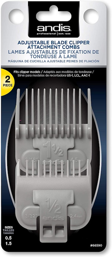 Provides safe, accurate clipper cutting. Secure snap-on design. Fits models: US-1, LCL, and AAC-1 Sizes 0.5 and 1.5 (3/32" and 3/16") Snap-on blade attachment combs, 2 combs